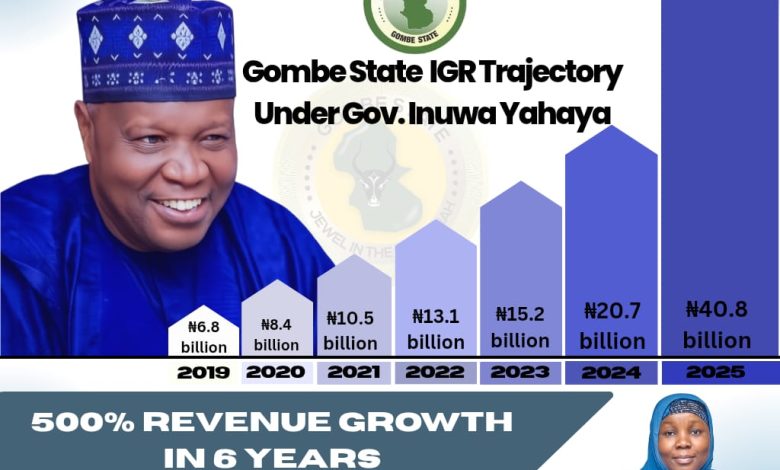 Gombe State, Nigeria – January 25, 2026 Gombe State has recorded a historic surge in Internally Generated Revenue (IGR), growing from ₦6.8 billion in 2019 to an unprecedented ₦40.8 billion in 2025. The milestone marks a nearly 500% increase in six years under the leadership of Governor Muhammadu Inuwa Yahaya, CON. The 2025 revenue figure nearly doubled the ₦20.7 billion recorded in 2024 and exceeded the state’s target of ₦25.7 billion by a staggering 158%, signaling a new era of financial strength and governance efficiency. Chairman of the Gombe State Internal Revenue Service (GIRS), Aisha Adamu, FCNA, attributed the growth to strategic reforms initiated by the Yahaya administration. Since her appointment in 2023, she said, the state has seen accelerated revenue performance. “From ₦15.18 billion in 2023, we rose to ₦20.72 billion in 2024. In just one year, we doubled that to over ₦40 billion,” Adamu stated. She credited the Governor’s unwavering support and focus on fiscal discipline, improved taxpayer compliance, and expansion of the tax base as key drivers of the success. The GIRS Chairman emphasized that the increased revenue would enable the government to invest more in social infrastructure, enhance public service delivery, and fund critical development projects that directly benefit Gombe residents. “As we move into 2026, we are confident that with continued support from His Excellency and the cooperation of the good people of Gombe State, we will achieve even greater revenue performance,” she affirmed. Governor Inuwa Yahaya’s administration continues to earn praise for its commitment to economic transformation, transparency, and results-driven governance. End